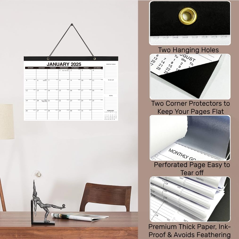 Designed for easy organization, this calendar features a clear plastic cover that protects it from spills and stains, while also giving it a sleek and professional look. Whether you use it at home, school, or the office, this desk/wall calendar is the perfect companion for keeping your life in order.